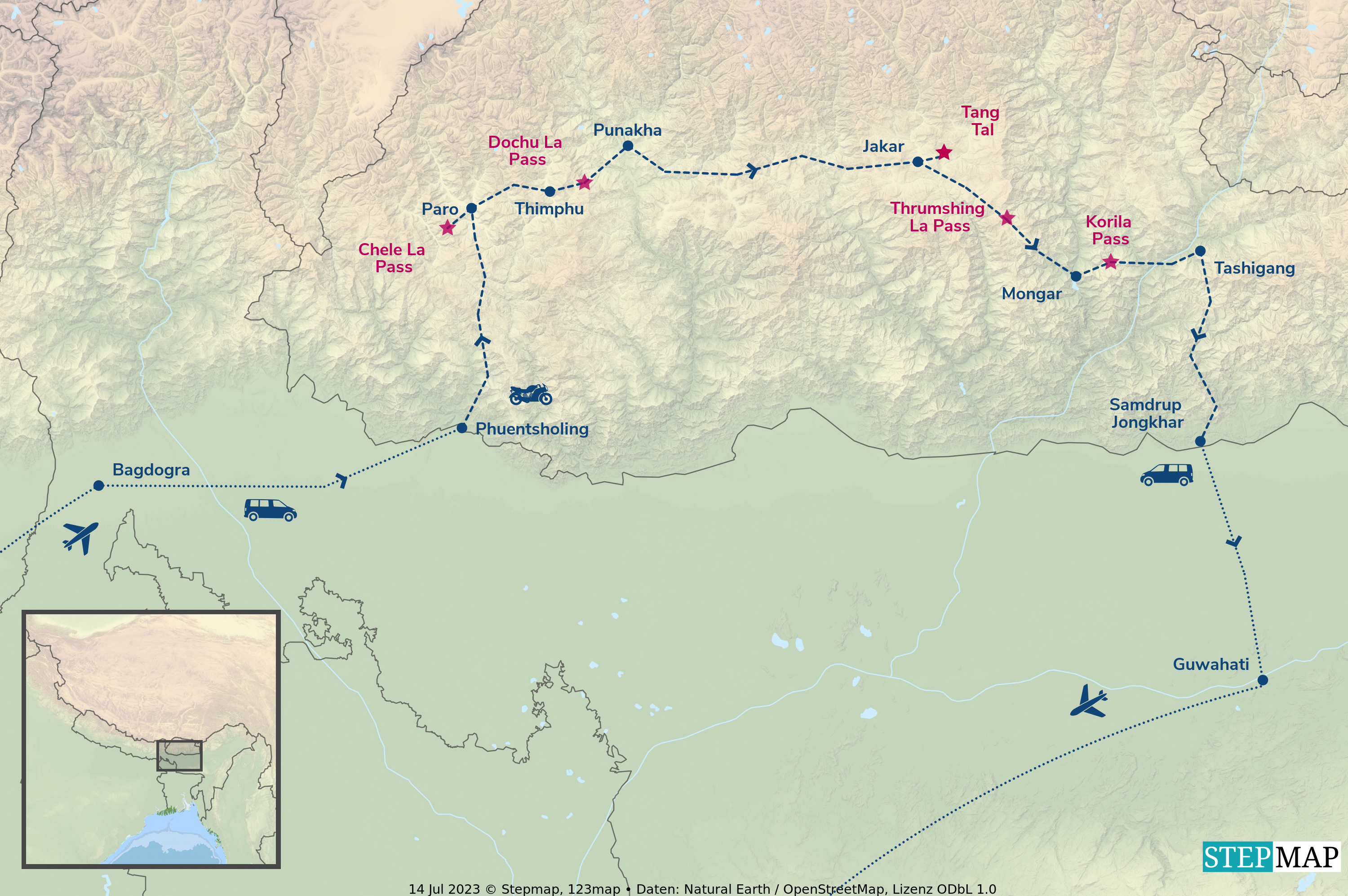 In Bhutan herrscht Linksverkehr. Ein internationaler Führerschein muss während der Tour mitgeführt werden.