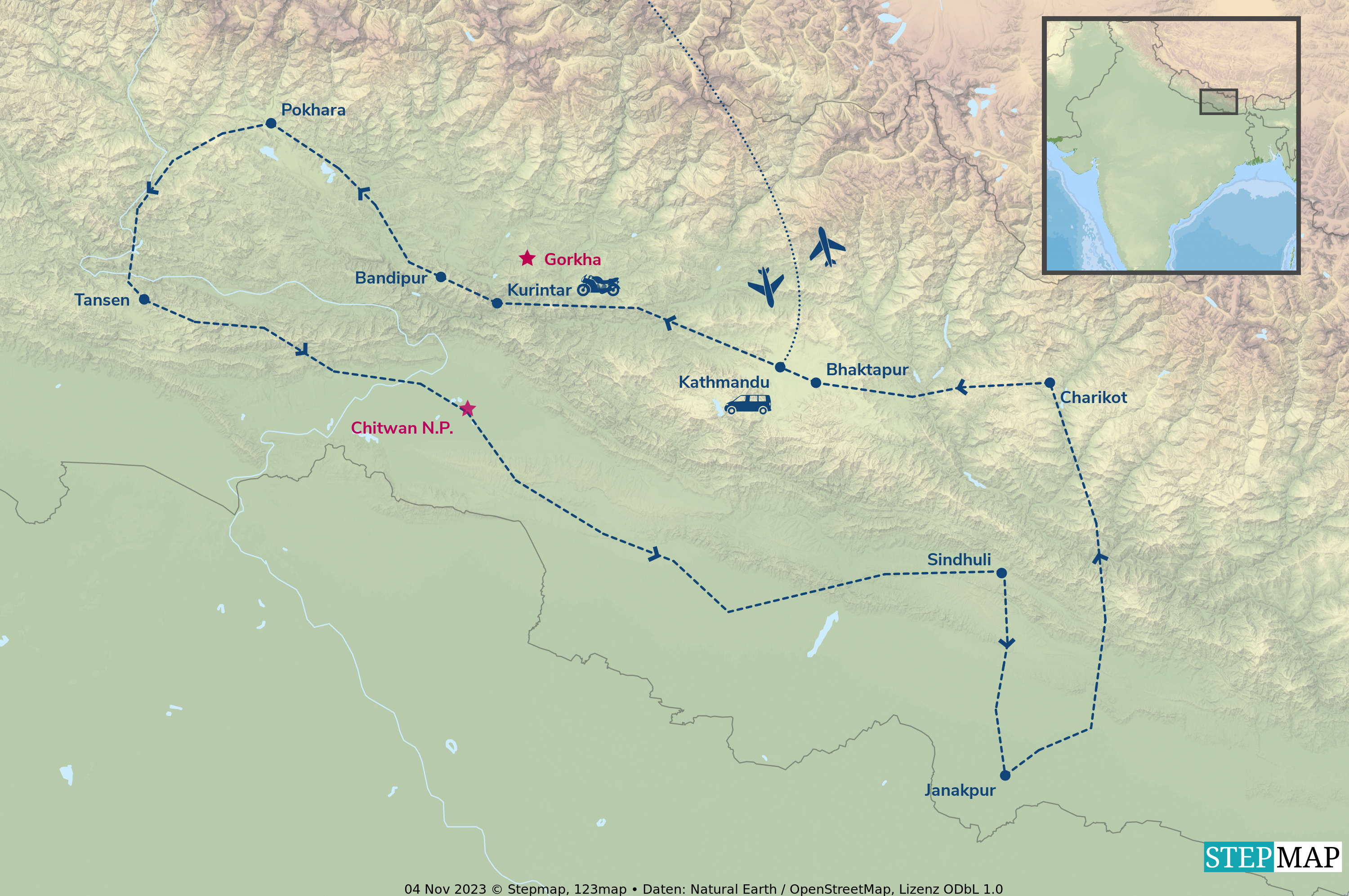 In Nepal herrscht Linksverkehr. Ein internationaler Führerschein muss während der Tour mitgeführt werden.