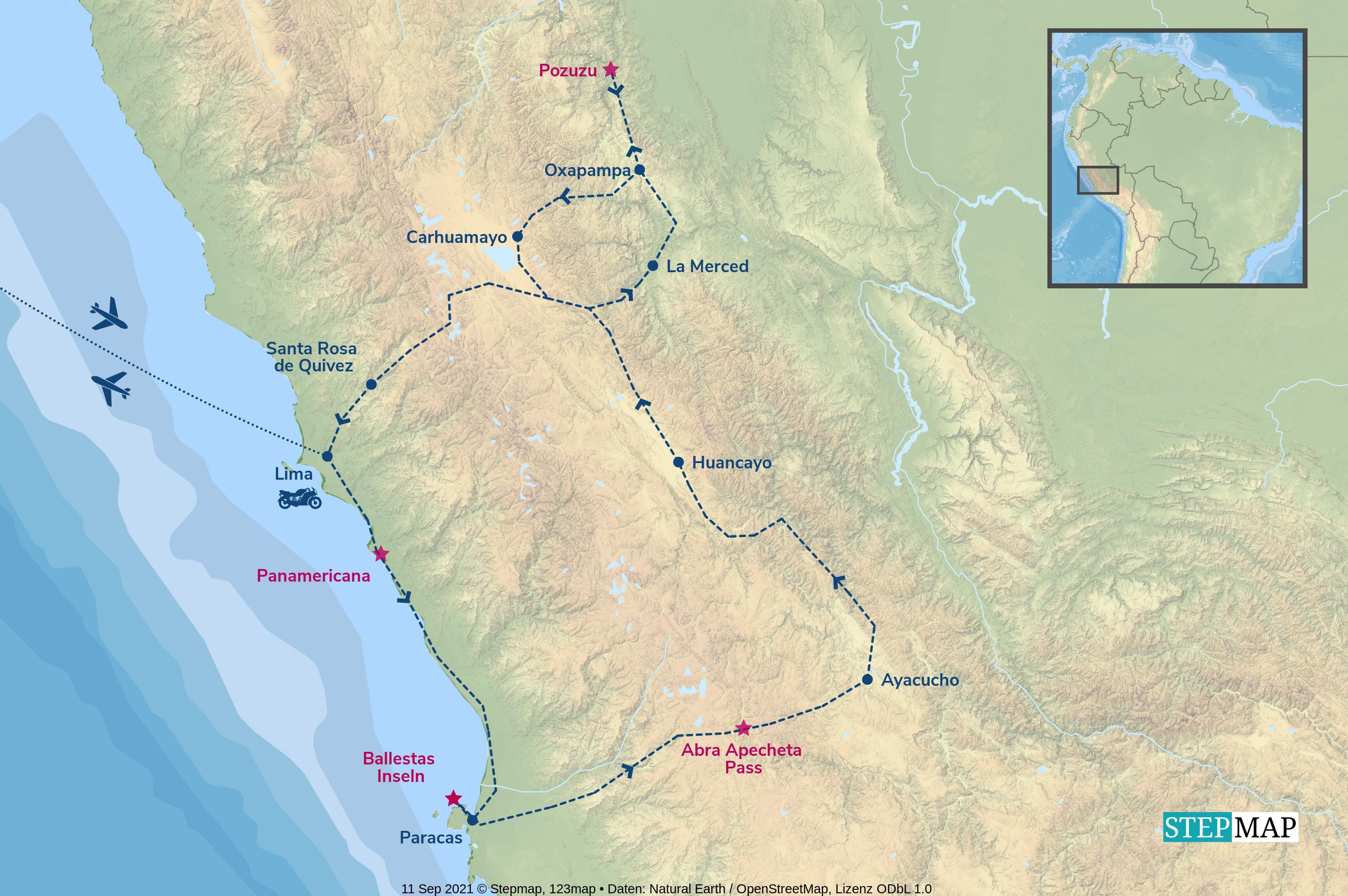 In Peru herrscht Rechtsverkehr. Ein internationaler Führerschein muss während der Tour mitgeführt werden.