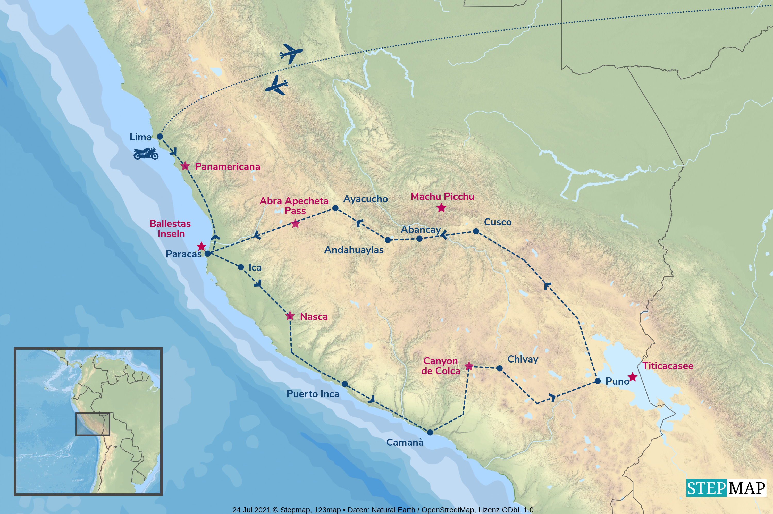 In Peru herrscht Rechtsverkehr. Ein internationaler Führerschein muss während der Tour mitgeführt werden.