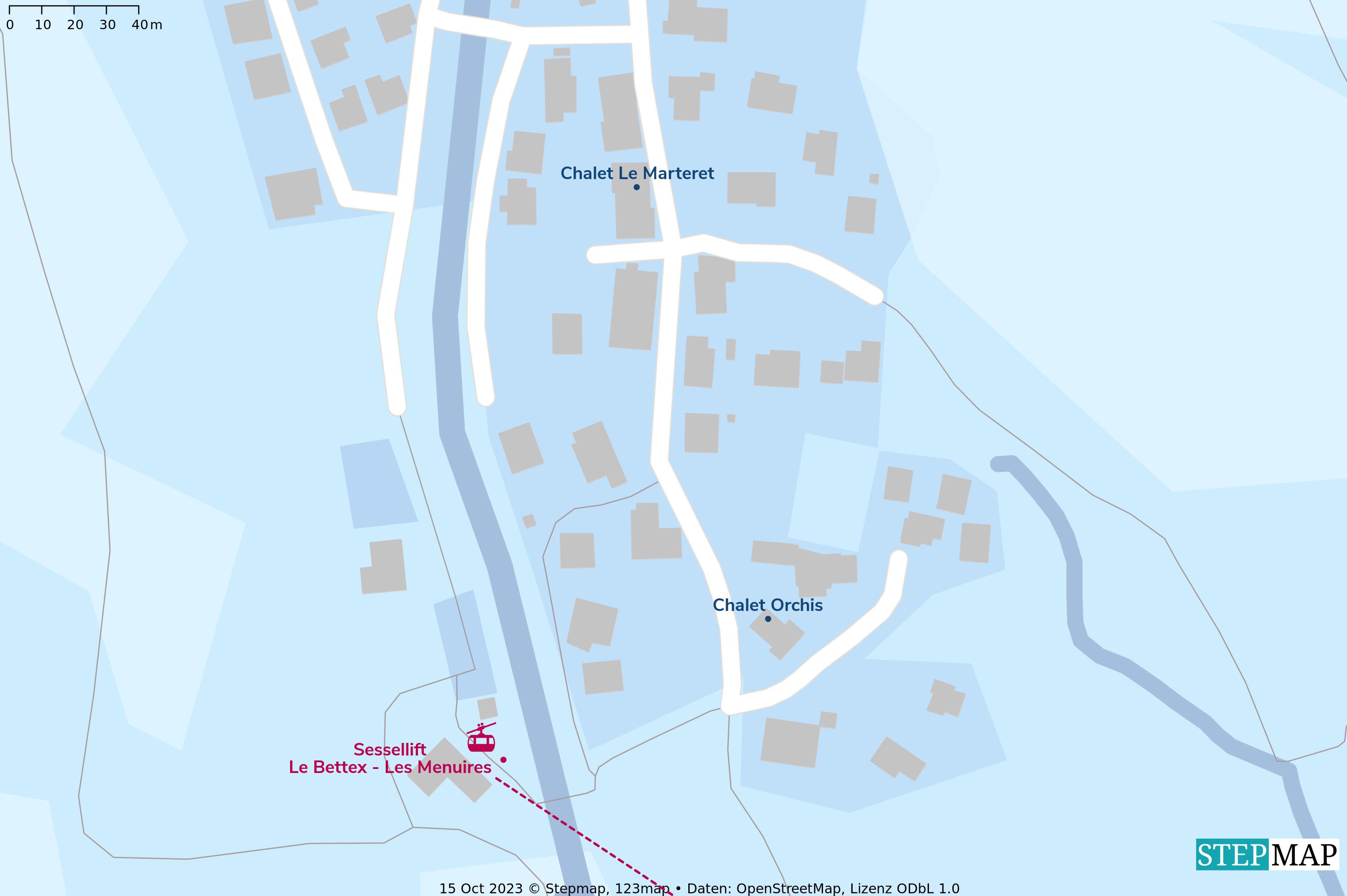 Unser no limits! Sportclub 3 Vallées mit den Chalets Le Marteret und Orchis, die fast unmittelbar an der Piste in Le Bettex und in ca 150 m Entfernung zueinander liegen. Von beiden Häusern kann der Sessellift nach Les Ménuires fußläufig erreicht werden.